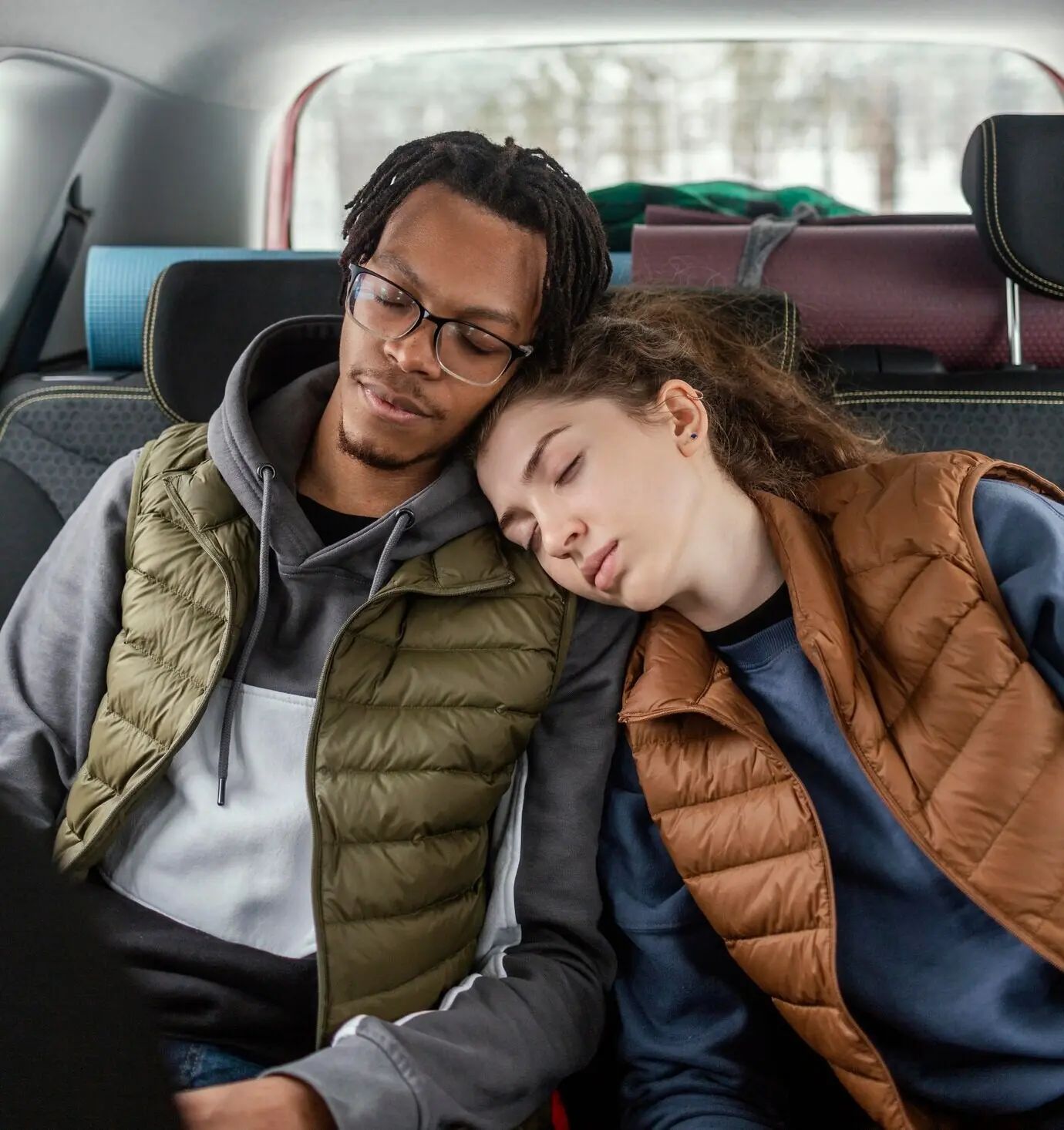 Unterwegs verbunden: Auto, Bus, Supermarkt
